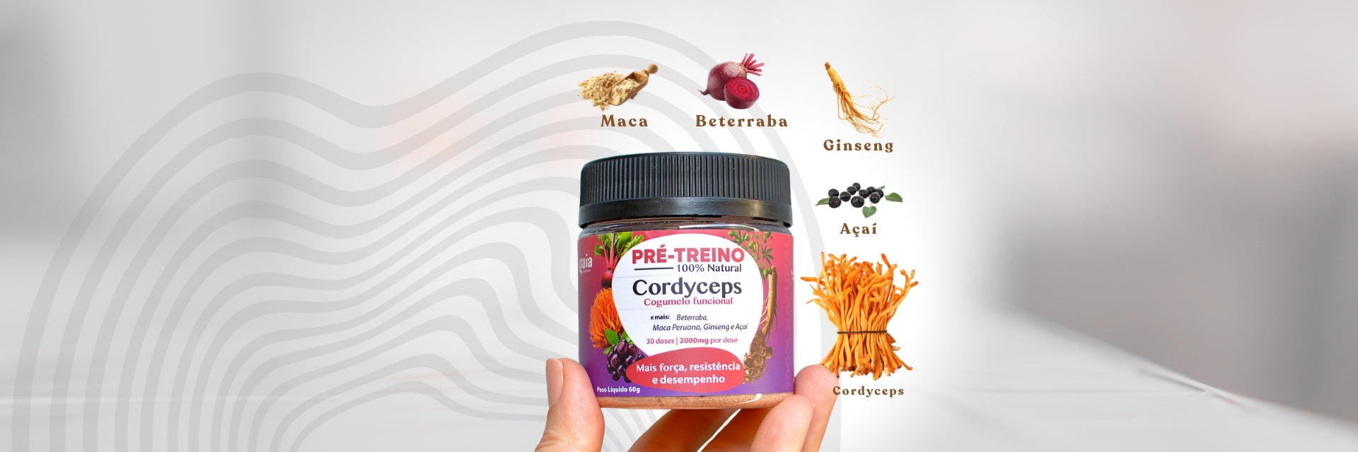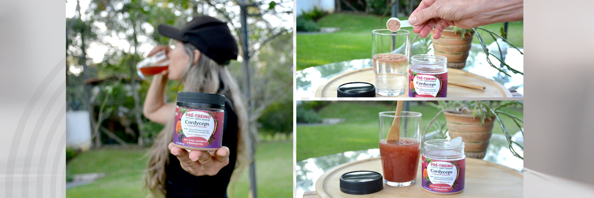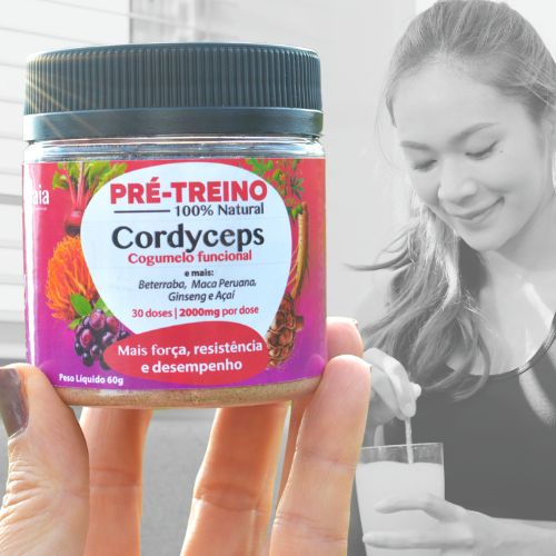 É muito simples! Basta misturar uma dose (2000mg) do Pré-treino Natural de Cogumelo Cordyceps em qualquer bebida de sua preferência, como água, suco ou shake. O produto mistura facilmente, garantindo praticidade para o consumo no dia a dia e antes dos treinos.